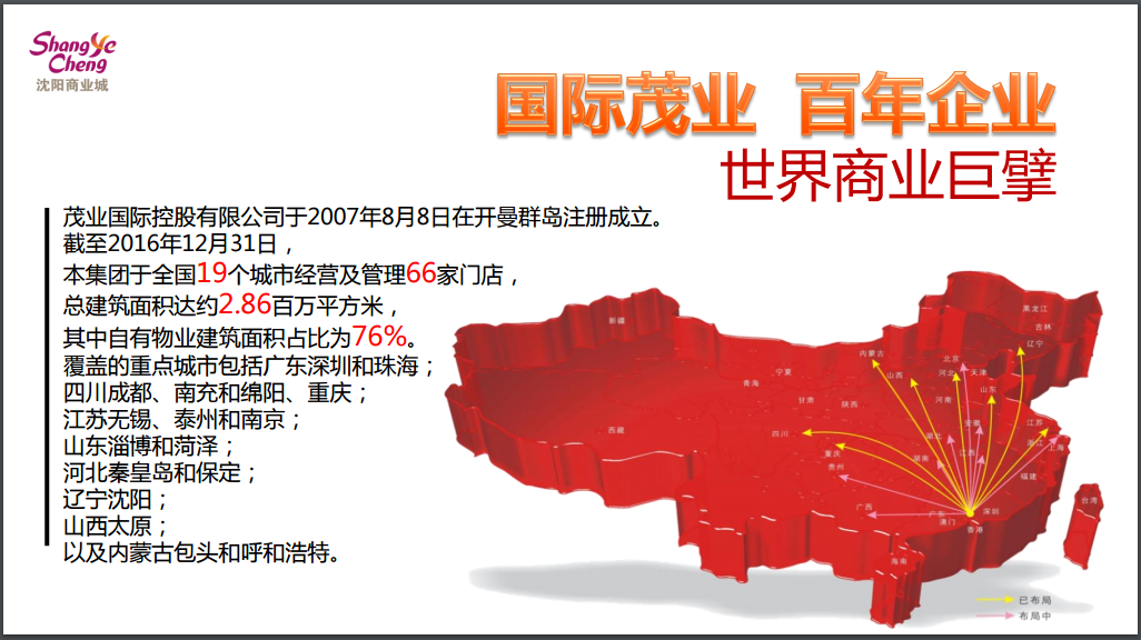 鐘總在向與會嘉賓介紹茂業(yè)國際旗下零售、地產(chǎn)、酒店、物業(yè)4大支柱產(chǎn)業(yè),全國五大區(qū)域30個中心城市戰(zhàn)略布局的同時,重點(diǎn)推介了以沈陽商業(yè)城為代表的沈陽區(qū)域5家重點(diǎn)商業(yè)及地產(chǎn)項目。